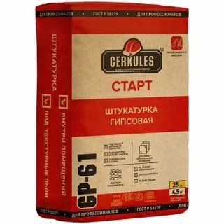 Читать все статьиШтукатурка гипсовая GERKULES СТАРТ GP-61 30кг